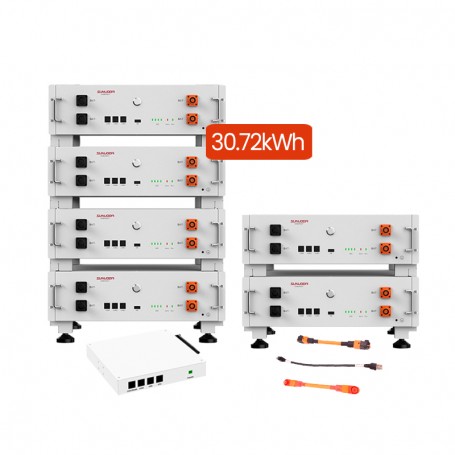 The Sunwoda Atrix 30.72kWh lithium solar battery kits are a reliable and long-lasting choice for photovoltaic energy storage solutions. Consisting of 5 Sunwoda Atrix 5.12kWh LV lithium batteries, this kit offers great charging and discharging efficiency, 100 per cent depth of discharge and a long service life. Its modular design allows the kit to be expanded up to a maximum of 120kWh, and its plug-play connection allows for flexibility and easy installation. This kit is compatible with Solis - S5 EH 1p, S6 EH 1p - Solplanet - ASW S2 single-phase self-consumption inverters and Studer and Victron inverters for off-grid systems.
